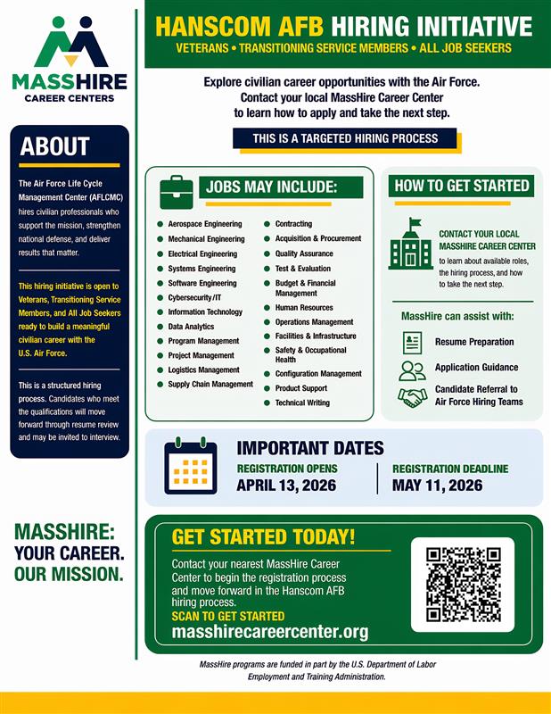 Presenters Wanted Apponequet High School Career Day Jacqueline Sylvia2024-03-11T11:15:33-04:00March 11th, 2024| Register Now!Get flyer! Register Now!Get flyer! Share with Friends! FacebookXLinkedInPinterestEmail Related Posts Need Your Diploma? Consider UMass Dartmouth Workers’ Education Program Gallery Need Your Diploma? Consider UMass Dartmouth Workers’ Education Program April 22nd, 2026 MassHire and Hanscom Air Force Bace Are Collaborating in a Civilian Hiring Event Gallery MassHire and Hanscom Air Force Bace Are Collaborating in a Civilian Hiring Event April 22nd, 2026 HOT JOBS — Week Ending April 17, 2026 Gallery HOT JOBS — Week Ending April 17, 2026 April 20th, 2026